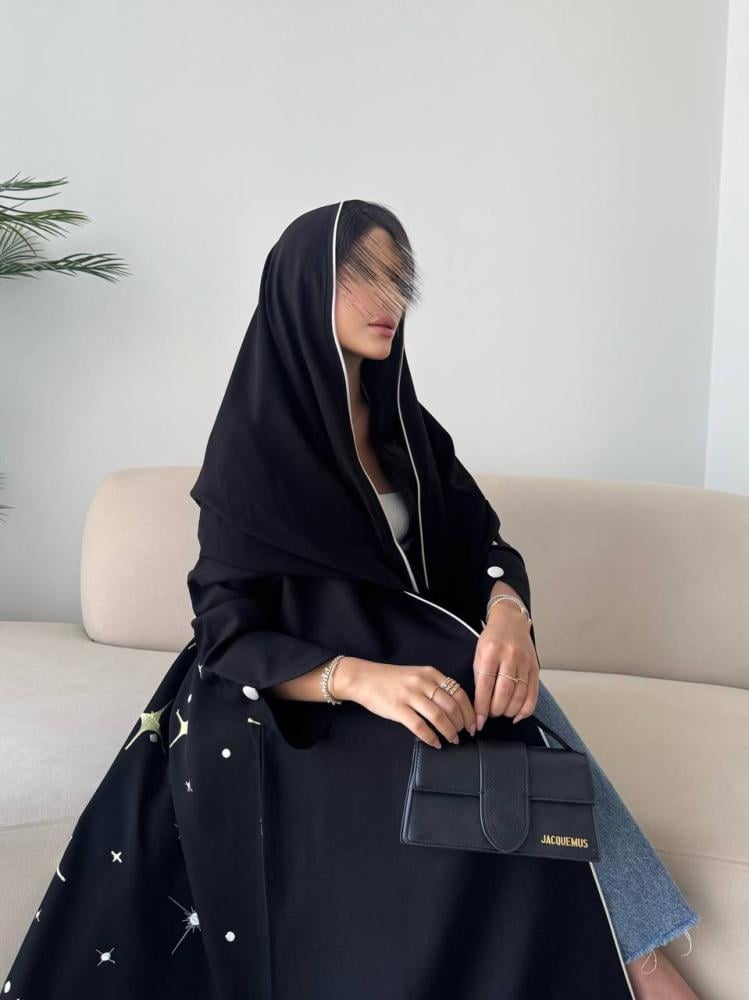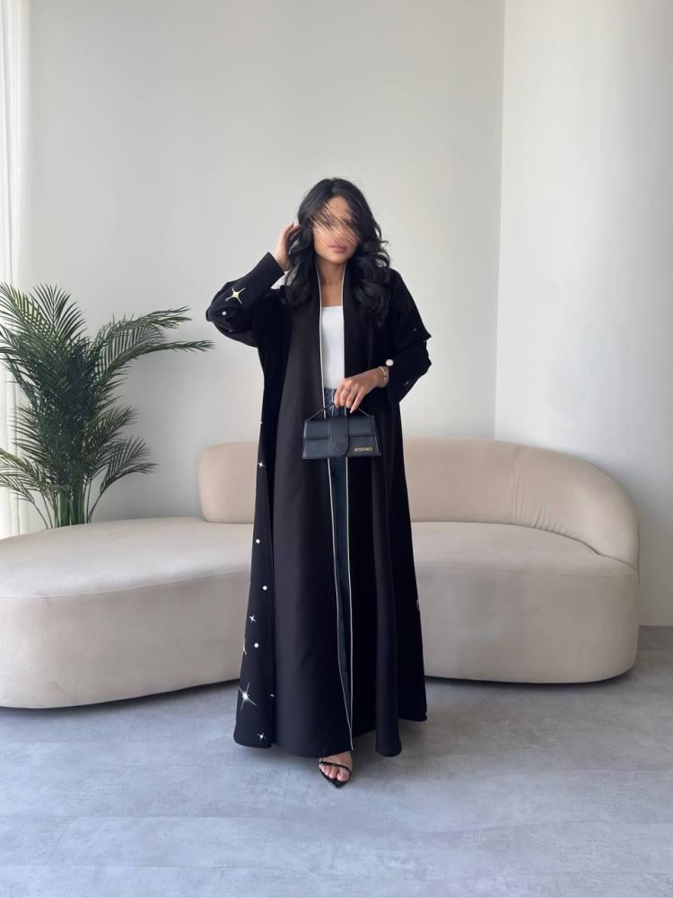 عبايه رقم 826 / القماش كريب لمار / القصه ربع كلوش / التطريز كمبيوتر / متوفره ب تطريز اسود