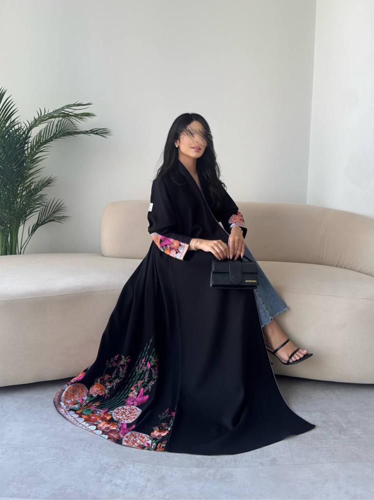 عبايه رقم 830 / القماش كريب لمار / القصه ربع كلوش / التطريز كمبيوتر / متوفره ب تطريز اسود
