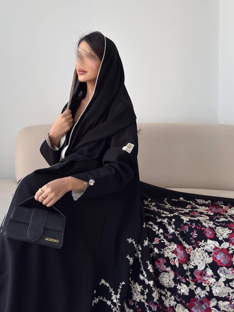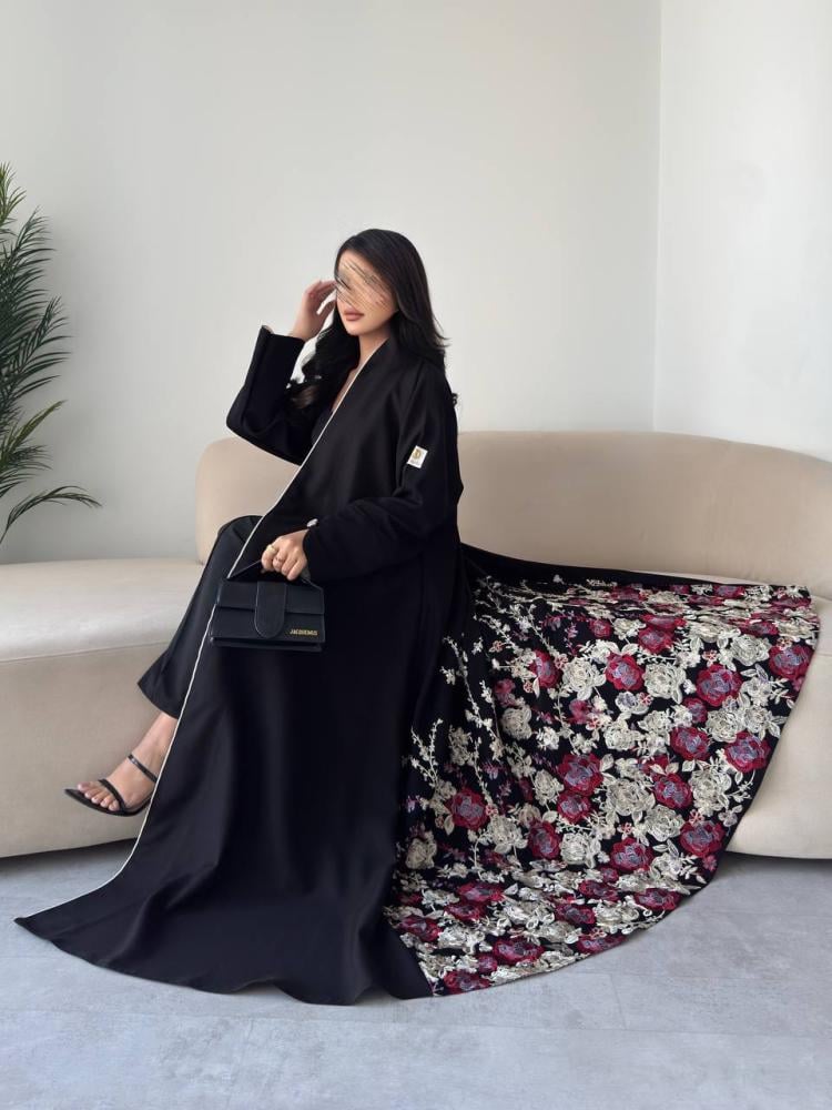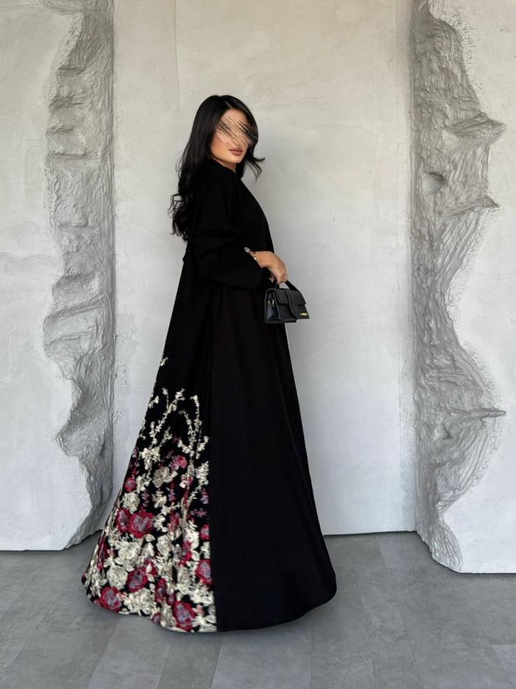 عبايه رقم 876 / القماش كريب لمار / التطريز كمبيوتر / القصه نص كلوش