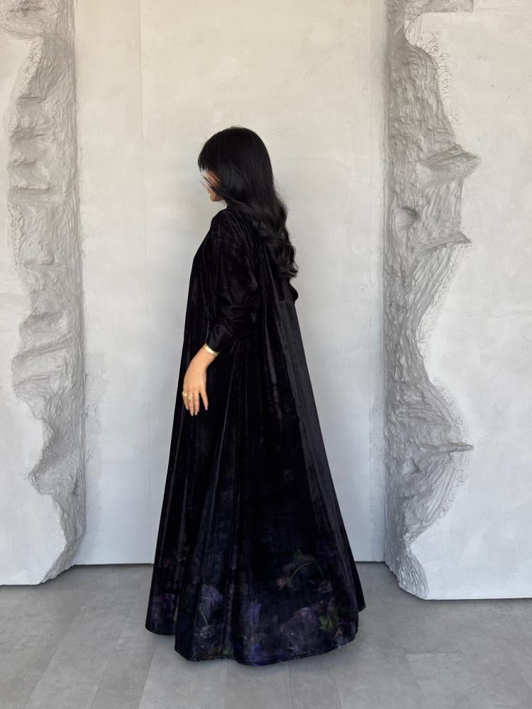 عبايه رقم 890 / القماش مخمل شتوي / القصه نص كلوش / طباعه ديجتال اسفل العبايه