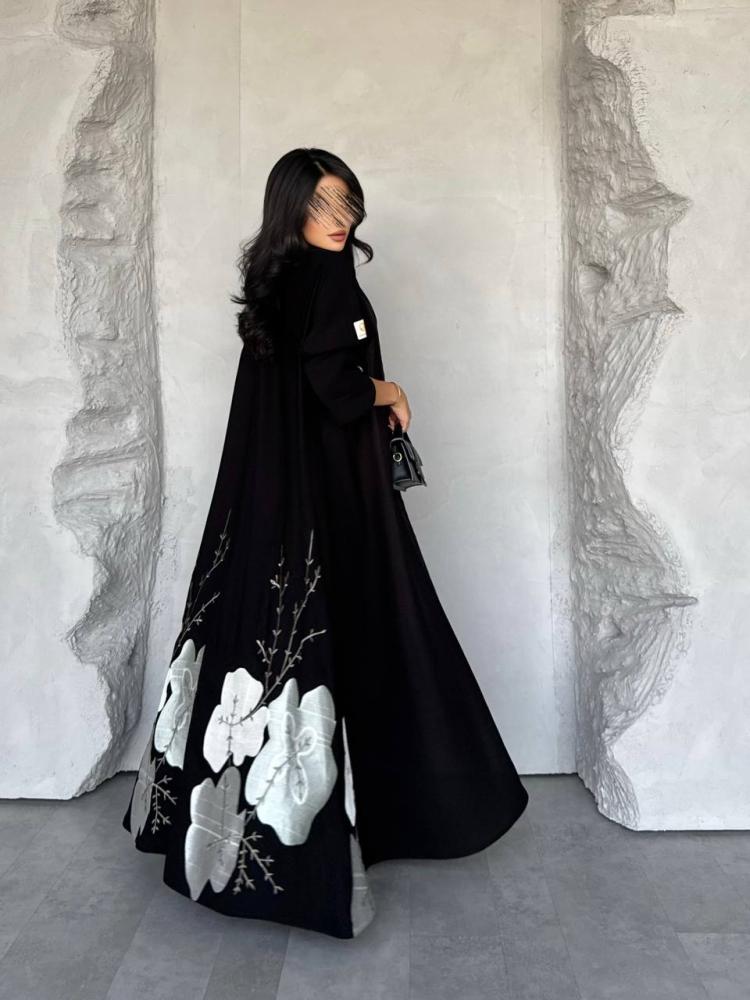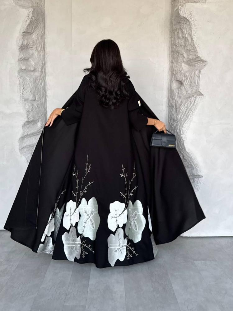 عبايه رقم 875 / القماش كريب لمار / التطريز كمبيوتر / القصه نص كلوش